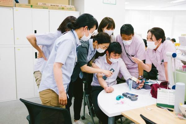 砧公園が目の前にある在宅医療部の事業所はオープンデスクで風通しのよい職場のため、多職種の距離が近く困ったことがあっても気軽に相談し合える環境が自慢!また、ケアを提供する私たちが余裕を持って楽しく働くことがより良いケアの提供につながると考えており、仕事以外の時間を大切にできるようスタッフ同士が協力し合ってシフト調整などもしています。ママさんスタッフも在籍しているので、家庭と両立して長く働ける環境でもあります。