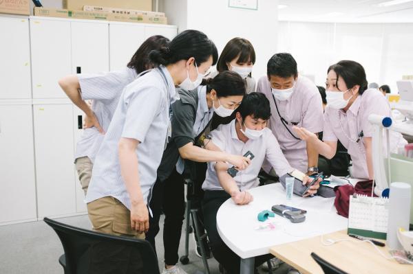 看護師の半数程度は訪問看護未経験からスタートしました。訪問診療の同行からスタートして、在宅医療について学んでから訪問看護に挑戦することができます。併設する在宅クリニックの医師から学んだり、プリセプター制度で一人一人に合わせて丁寧に教育をしていきます。毎週2時間全員が参加するカンファレンスや勉強会などの院内研修に加えて、学会参加・研修を支援する制度など、学びの機会はたくさんあります。ただ、これらは強制ではありません。子育て・介護など一人一人のライフステージや心持ちに合わせて取り組めます。研修医、看護学生、認定看護師などの研修を常時受け入れているのも良い刺激になります。